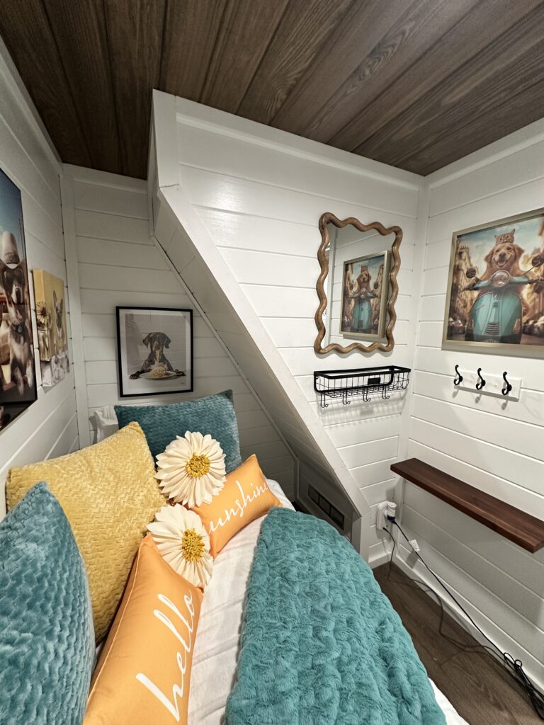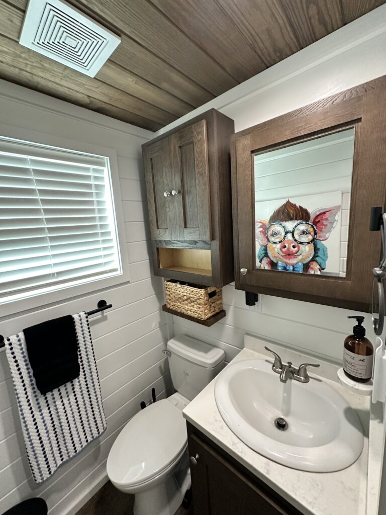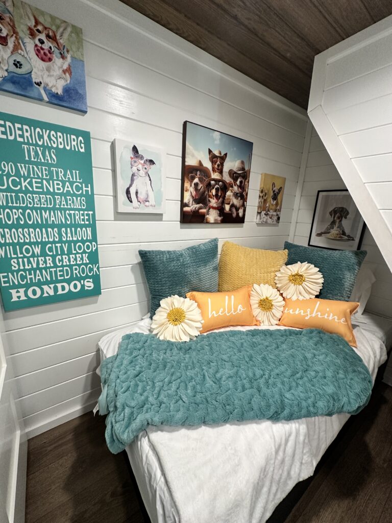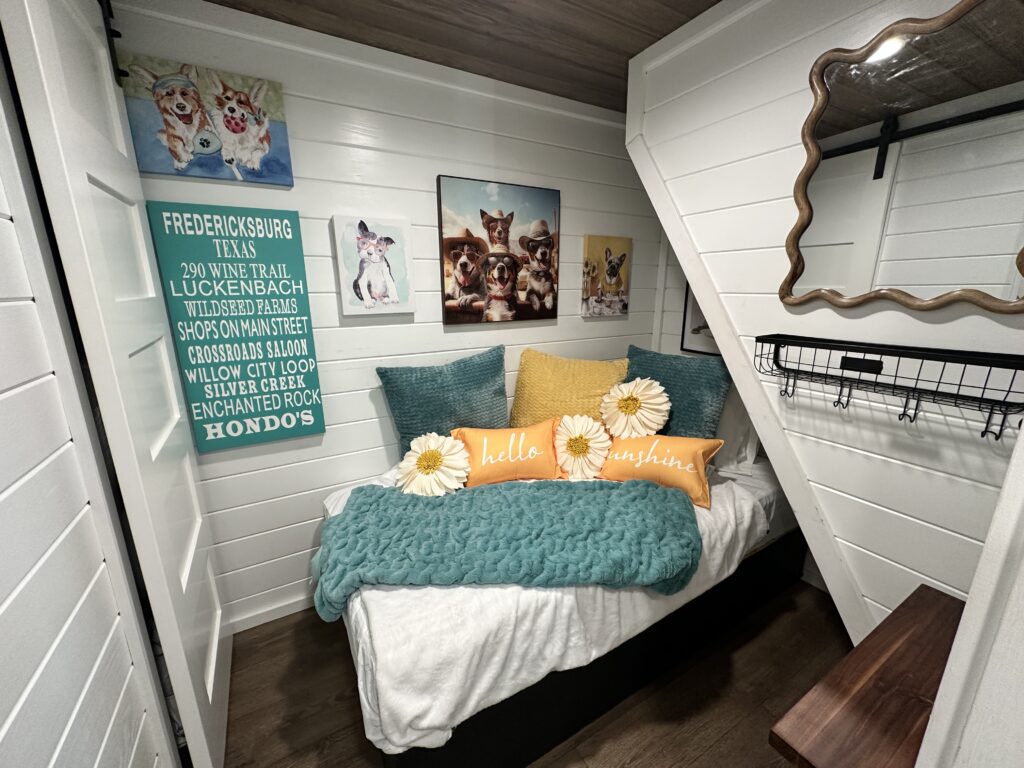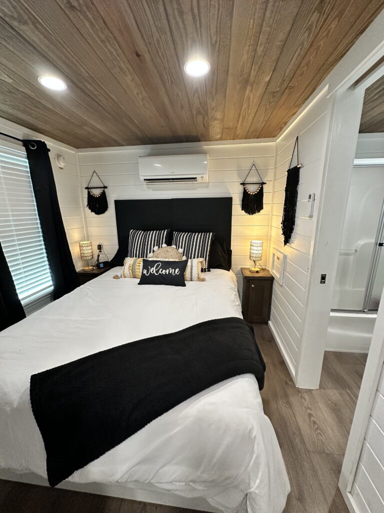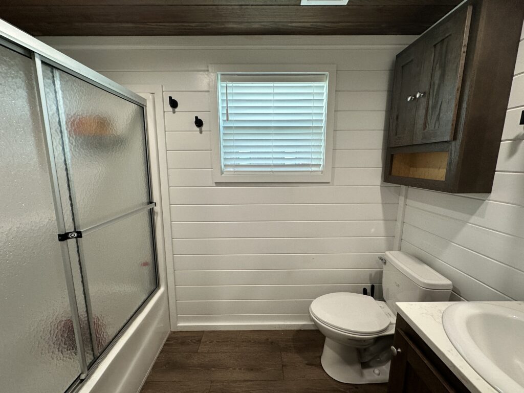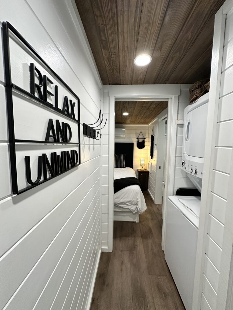 Sometimes you just feel STIR-CRAZY and the owners want you from the minute you arrive, to enjoy the views and settle in whether you are a small group or as many as 7 adults. This home offers a downstairs master bedroom and a double loft that includes 1 queen bed and 3 twin beds. The loft includes a 2nd TV for separate viewing. The downstairs master has a queen bed with a full on-suite bath. There is a hall half bath that provides additional convenience for your group. Downstairs living area you have the main TV with a fireplace below. This home offers a covered porch with outdoor seating – just swing the double French doors open to expand the living area and well-appointed kitchen. Your kitchen includes full size appliances, a dishwasher, and other small convenience items – air fryer, toaster, crock pot, and blender. Steps outside is your private covered pavilion with 65” TV with WIFI, Propane Fire Pit, Propane Gas Grill, seating and Picnic table to enjoy TV Viewing and cookouts. Comfortably Stir-Crazy #207 is located conveniently between the Phase 2 club house with family friendly amenities, weekend bands and food trucks, and Phase 3 which when open will include a 2nd club house, Pickle Ball, and Mini Golf. Their hope is you sit around your own private Propane firepit – propane is provided – and leave the Stir-crazy feeling behind. * This unit is pet friendly